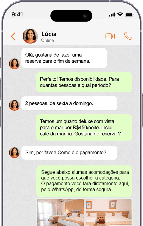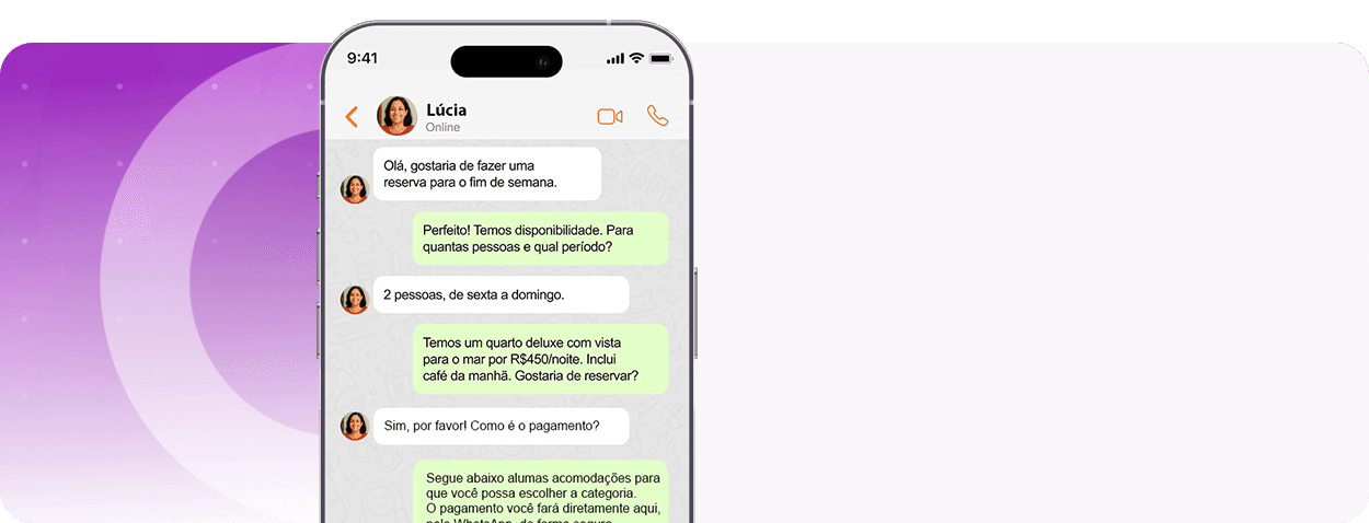Reservas confirmadas direto pelo WhatsApp, sem redirecionamento.