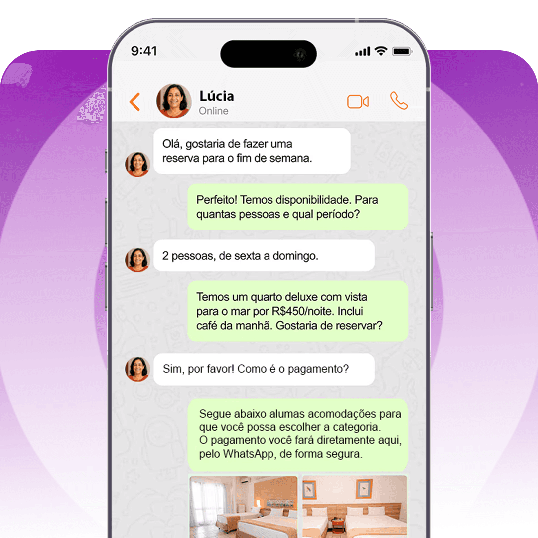 Colete dados dos hóspedes, processe pagamentos e confirme reservas automaticamente via WhatsApp com segurança e criptografia.