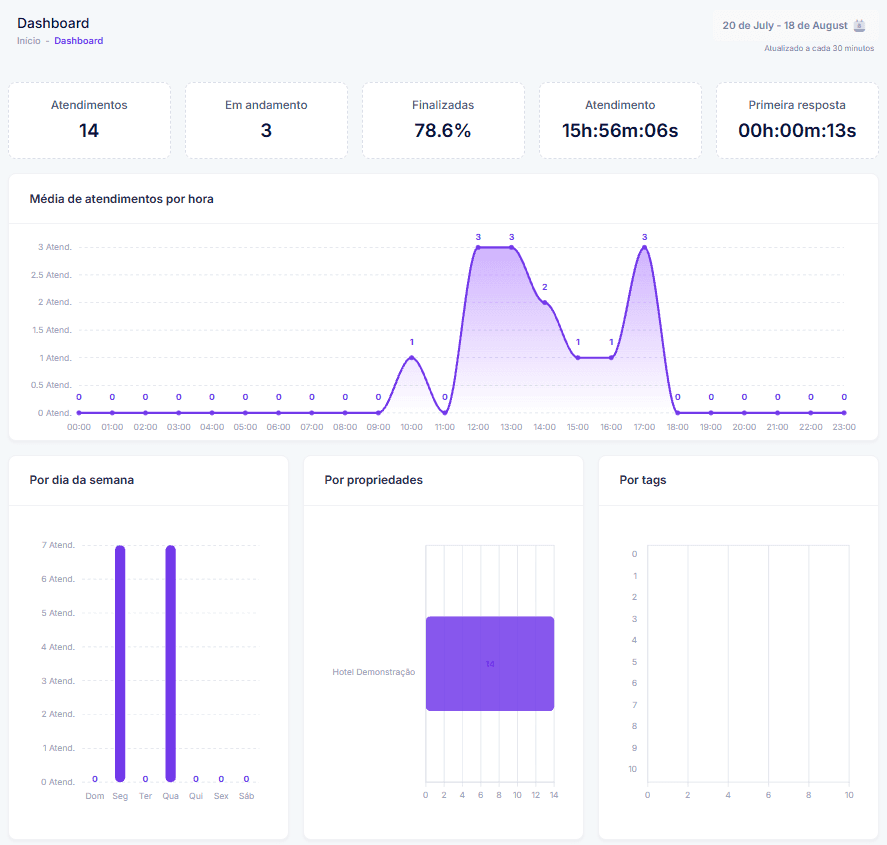 Visualize o andamento dos seus atendimentos em formatos rápidos de visualização geral